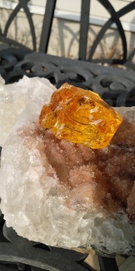 ゴールデンイエローの美しいアンダラクリスタルとなります。光に透かすと金色の光を放つスペシャルなワンピースとなります。全体的には刻まれたかの様な深いエッジが見られます。煌めく虹を見つけました。