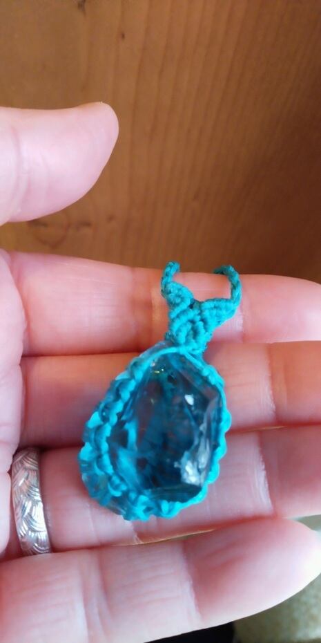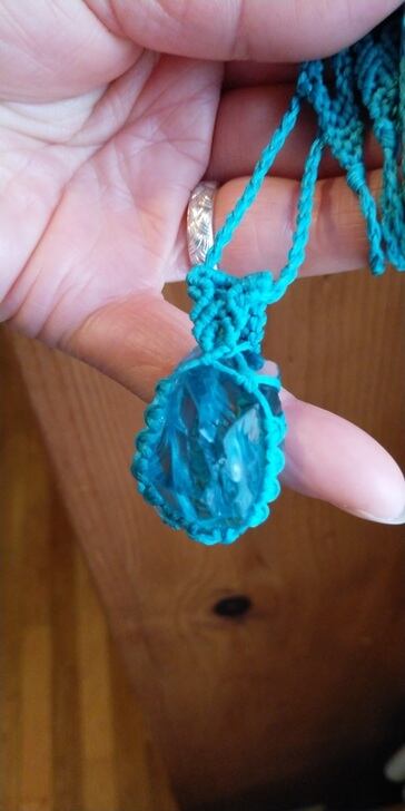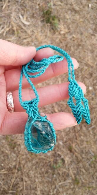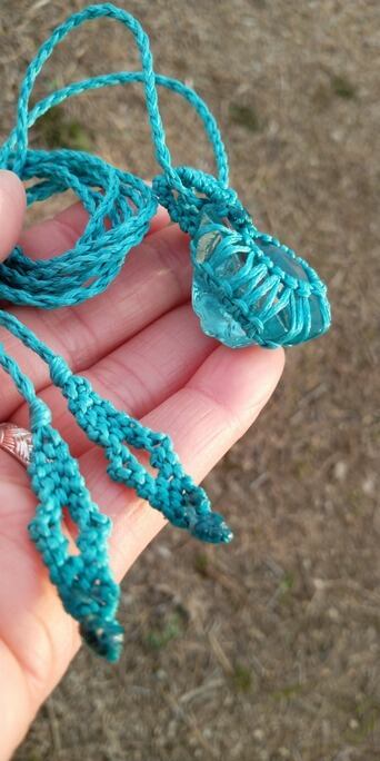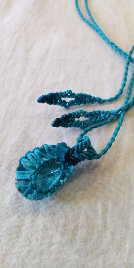シェラネバダ産アンダラクリスタル ブルーグリーン(イナンナズ・ウィズダム) マクラメ編みデザインネックレス 紐長さ約100㎝位まで調節可能