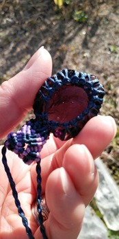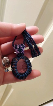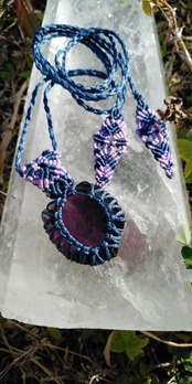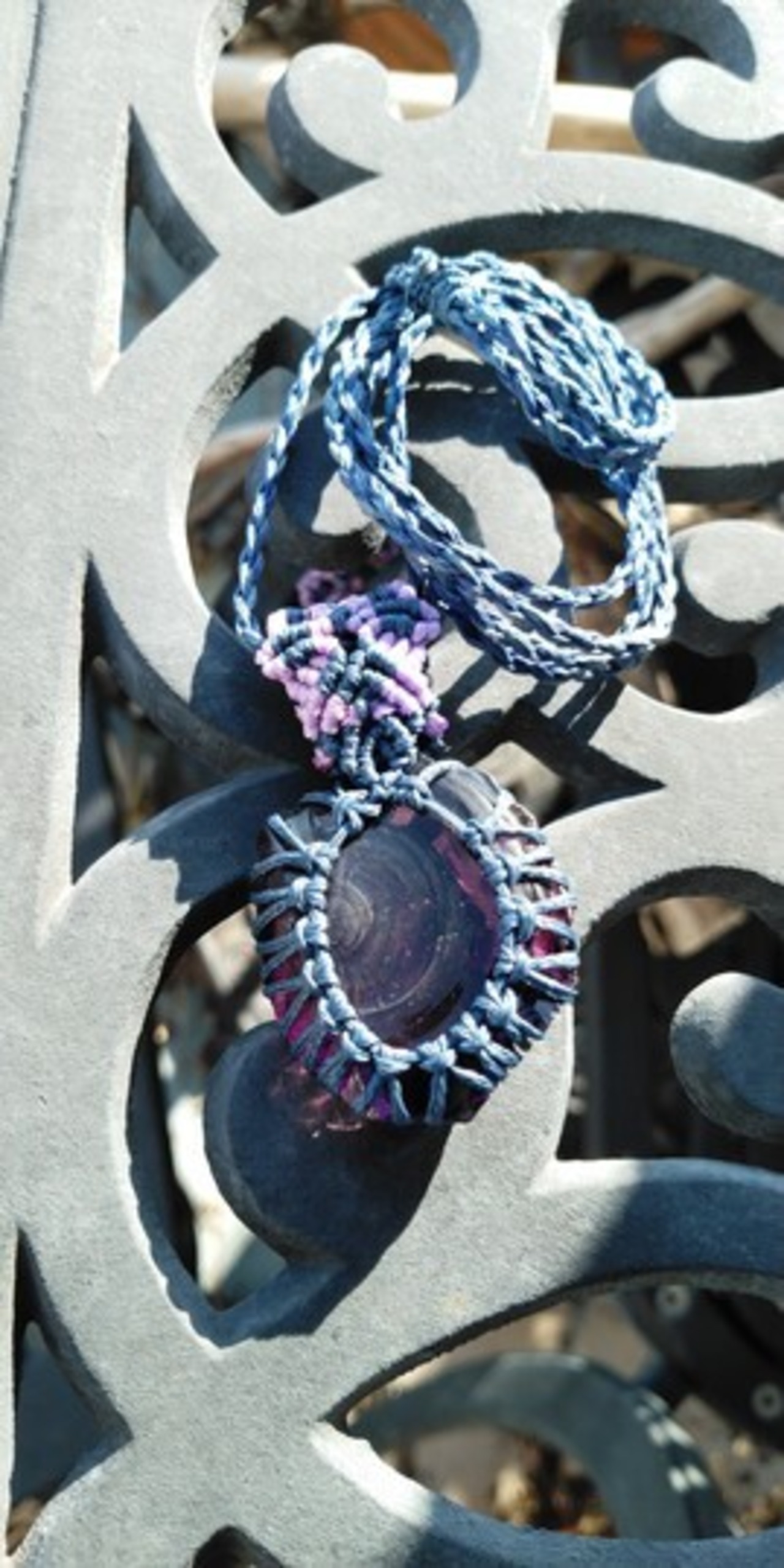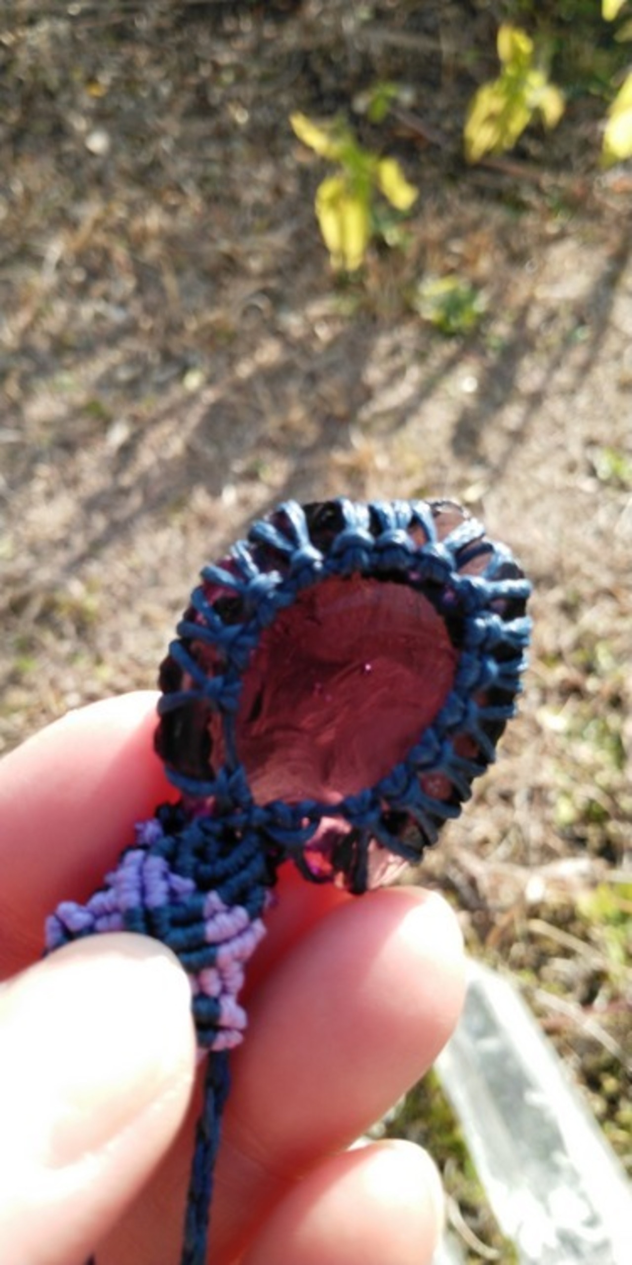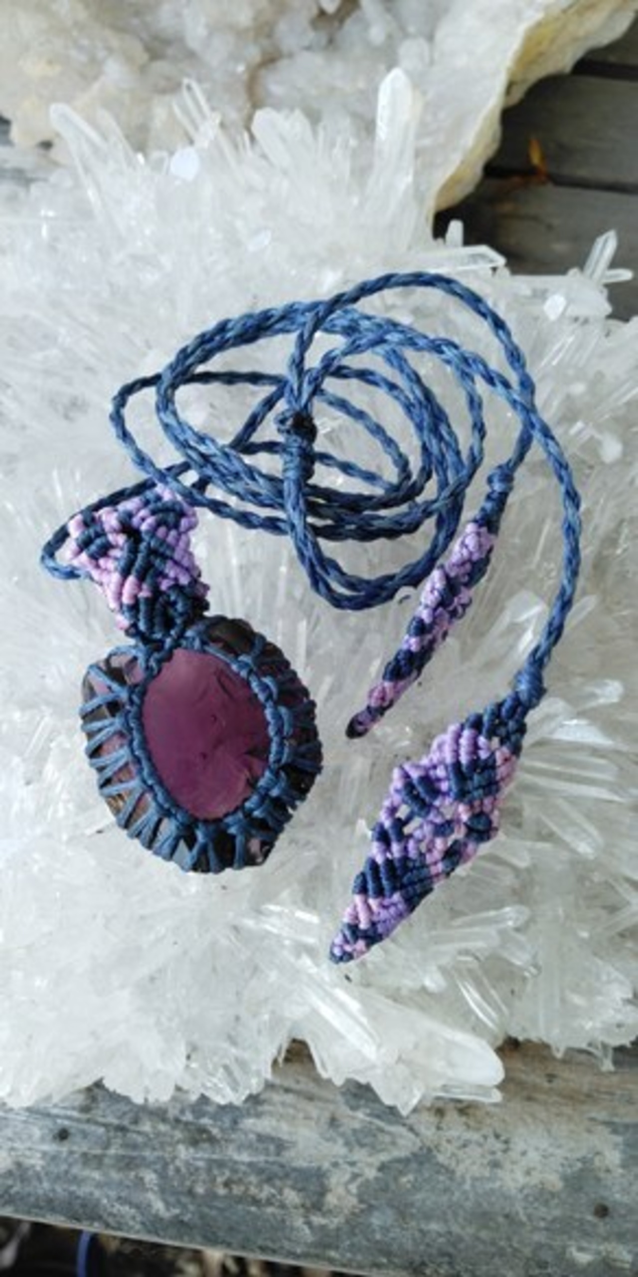 シェラネバダ産アンダラクリスタル パープル(ソブリンアメジスト) マクラメ編みデザインネックレス 紐長さ約88㎝位まで調節可能