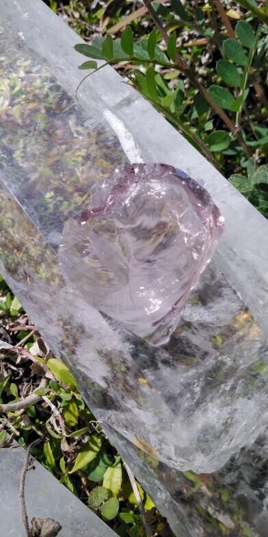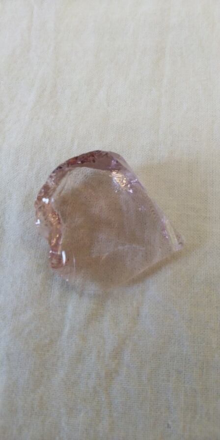 アンダラクリスタルのピンクカラーバリエーションは多く見られますが、こちらは優美なピンク(別名・セレスチャルハート ウィズ ゴッド)となります。透明感のある品のあるピンク色には見た目にも癒され、持つ方の深く癒されていない部分を包み込み開放し、癒しへのプロセスへと導いてくれるのではないでしょうか。穏やかな波模様の様なエッジが見られる神秘的でスペシャルなワンピースとなります。瞑想時のサポートストーンとなってくれるでしょう。