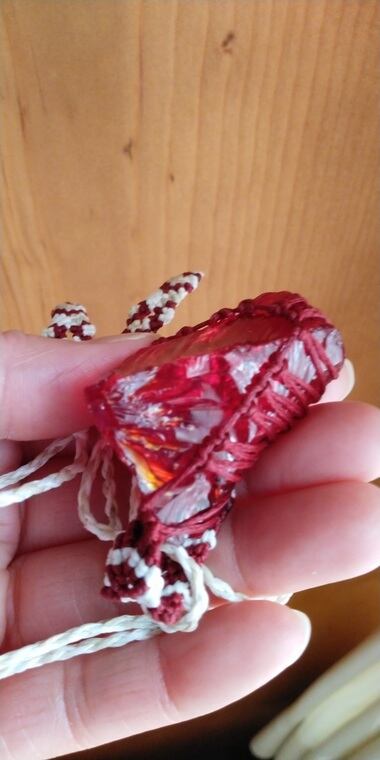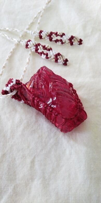 インドネシア産 アンダラクリスタル レッド マクラメ編みデザインネックレス 紐長さ約100㎝位まで調節可能