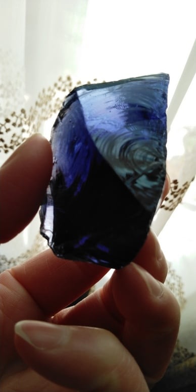 インドネシア産アンダラクリスタルのカラーバリエーションは多様にございますが、こちらはレアカラーのミルキーダークブルーパープルとなります。一見すると不透明なお色目に感じられますが、光に透かすと透明感がございます。また光の質や当たり方によってダークブルーやパープルにも見られます。マットな感じに見えるのは、ほんのりミルキーがかっているからのようです。神秘的でいつまでも見て触れていたくなるアンダラクリスタルの一つとなります。