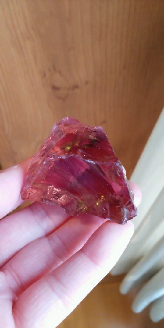 インドネシア産アンダラクリスタルのカラーバリエーションは多様にございますが、こちらはレアカラーで人気色のインディアンレッドとなります。天然石に例えるならば高品質なチベット産アンデシンのようなお色目となります。自然光の元では赤褐色を帯びた艶やのあるインディアンレッドカラーに見えるのですが、蛍光色元では輝くイエローからオリーブグリーンにカラーチェンジして見えるのです。虹も数か所見られるスペシャルなワンピースとなります。