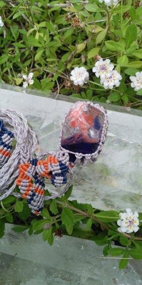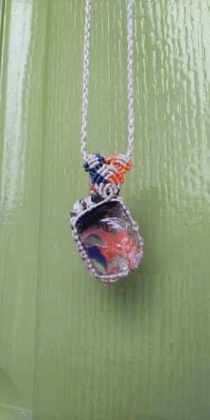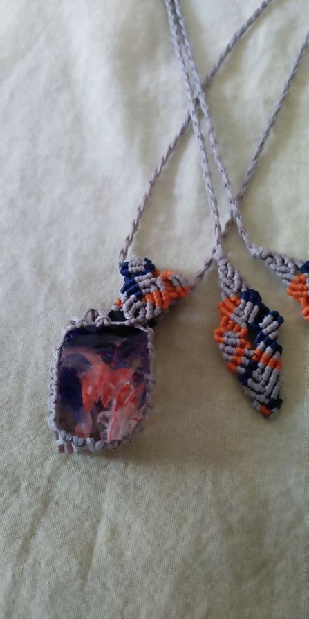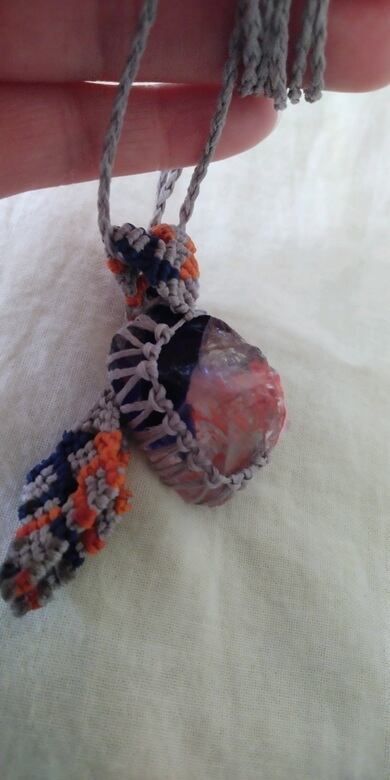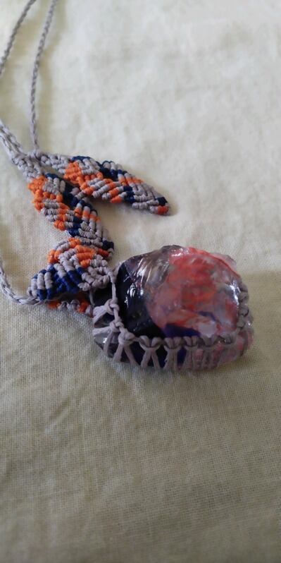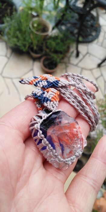 シェラネバダ産アンダラクリスタル マルチカラー(ブルー・オレンジ・クリア等) マクラメ編みデザインネックレス 紐長さ約114㎝位まで調節可能