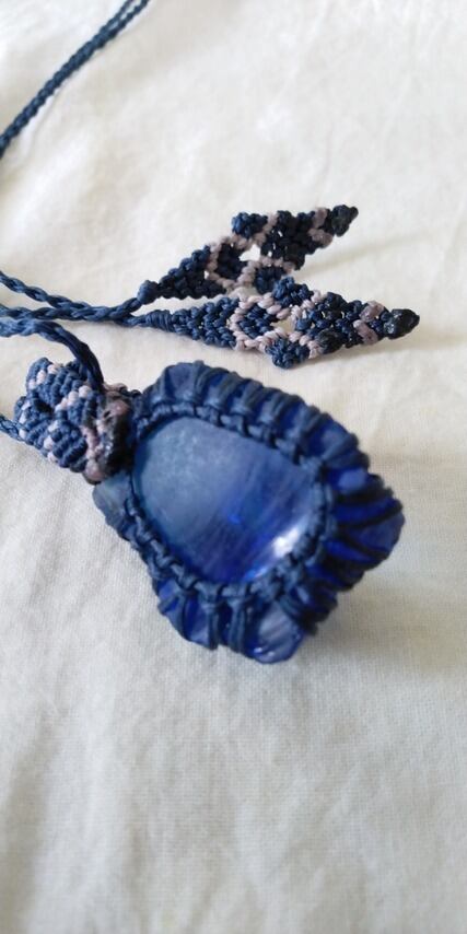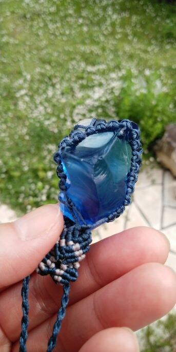 シェラネバダ産アンダラクリスタル ブルー(虹入り・マットな印象) マクラメ編みデザインネックレス 紐長さ約88㎝位まで調節可能