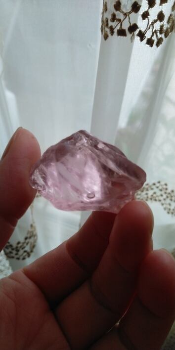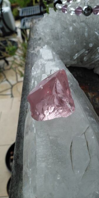 アンダラクリスタルのピンクカラーバリエーションは多く見られますが、こちらは人気色で天界のハートという名のピンク(セレスチャルハート)となります。輝くコーラルピンクは見た目にも癒され、持つ方の深く癒されていない部分を開放し、癒しへのプロセスへと導いてくれるでしょう。刻まれたかのような深いエッジや美しい虹、複数のシーフォーム(気泡)が見らる、スペシャルなワンピースとなります。ピカピカというよりは磨りガラスの様な手触りとなります。米国より直輸入したオールドストックのワンピースとなります。