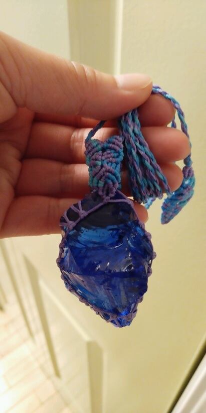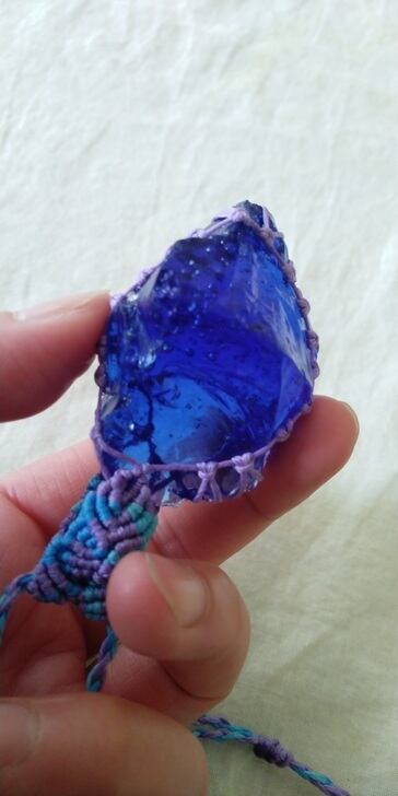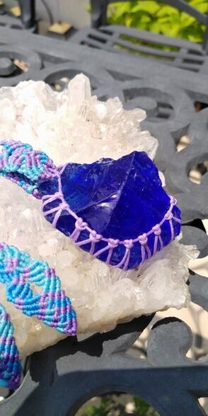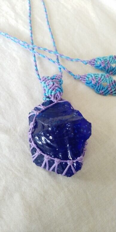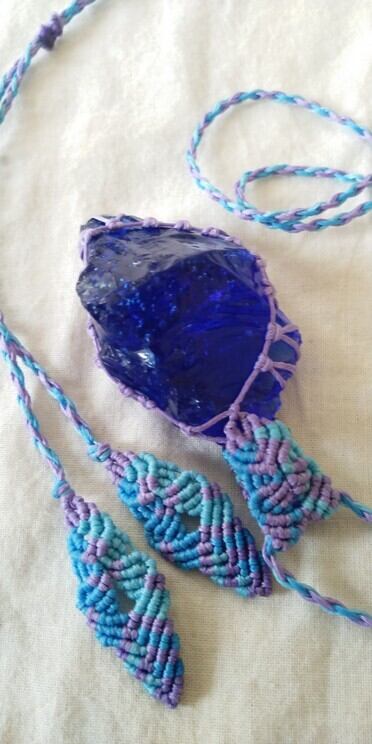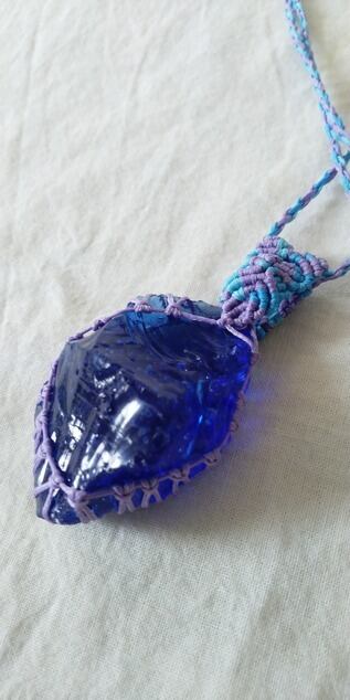 シェラネバダ産アンダラクリスタル マーリンズブルー(シーフォーム) マクラメ編みデザインネックレス 紐長さ約98㎝位まで調節可能