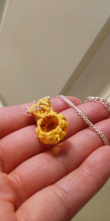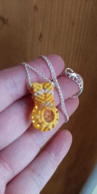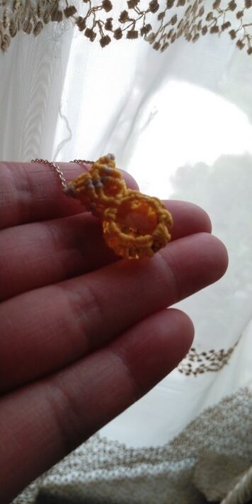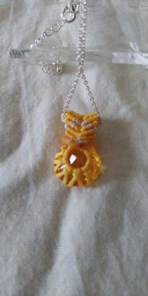 インドネシア産アンダラクリスタルのカラーバリエーションは多様にございますが、こちらは明るく輝くイエローカラーとなります。活力のあるエネルギーを分けてくれるような印象を受けるのです。小さなラウンドカットのルースをマクラメ編みで御包みいたしました。