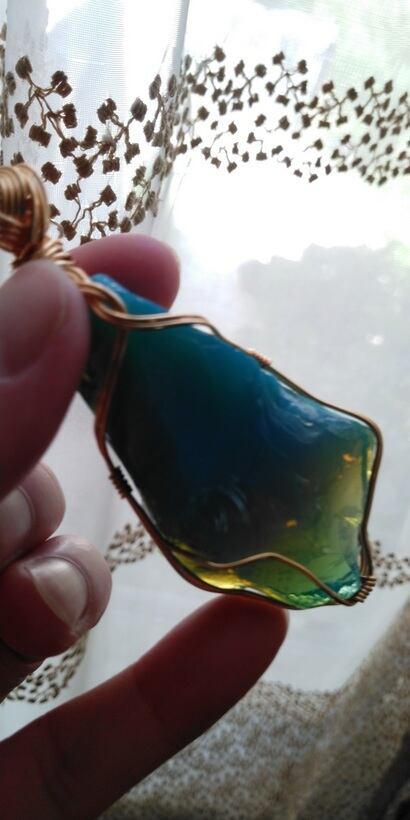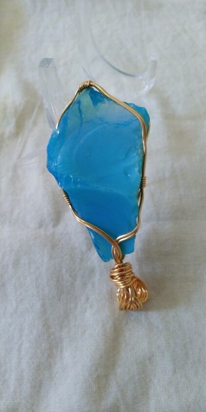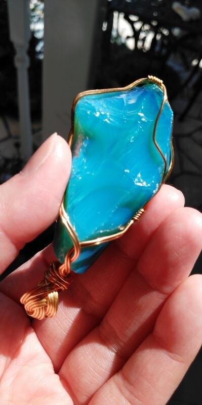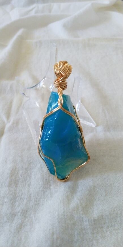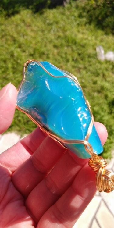 Special Price ✡ インドネシア産アンダラクリスタル ミルキーブルーグリーン 14kgfワイヤーペンダントトップ 重さ約38g