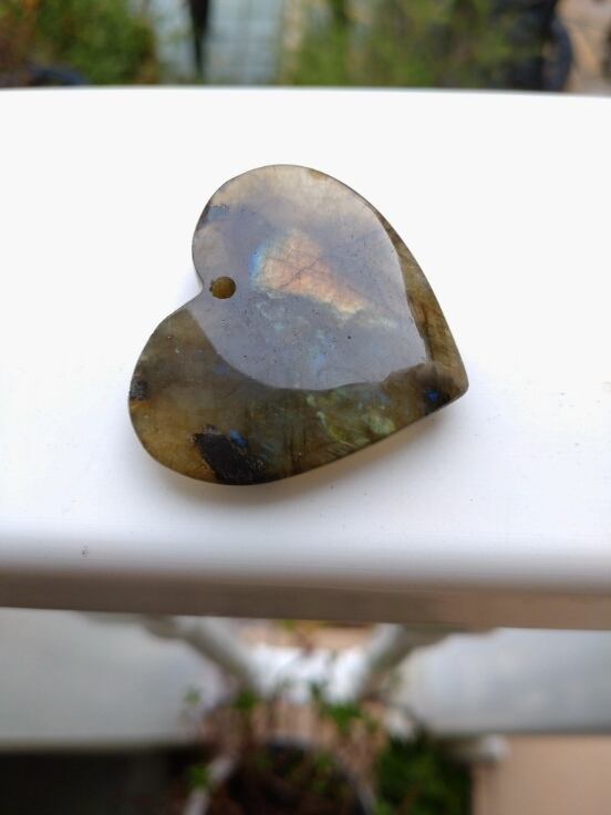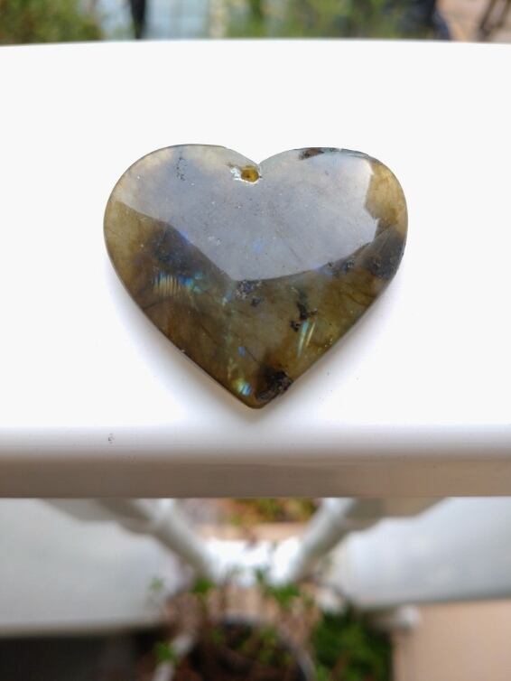訳あり品 ✡ マダガスカル産ラブラドライト ハートシェイプペンダントトップ 最大幅約42mm