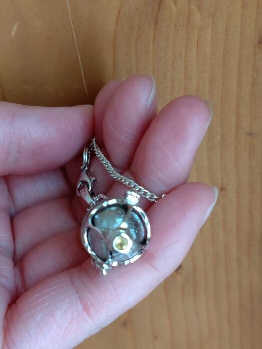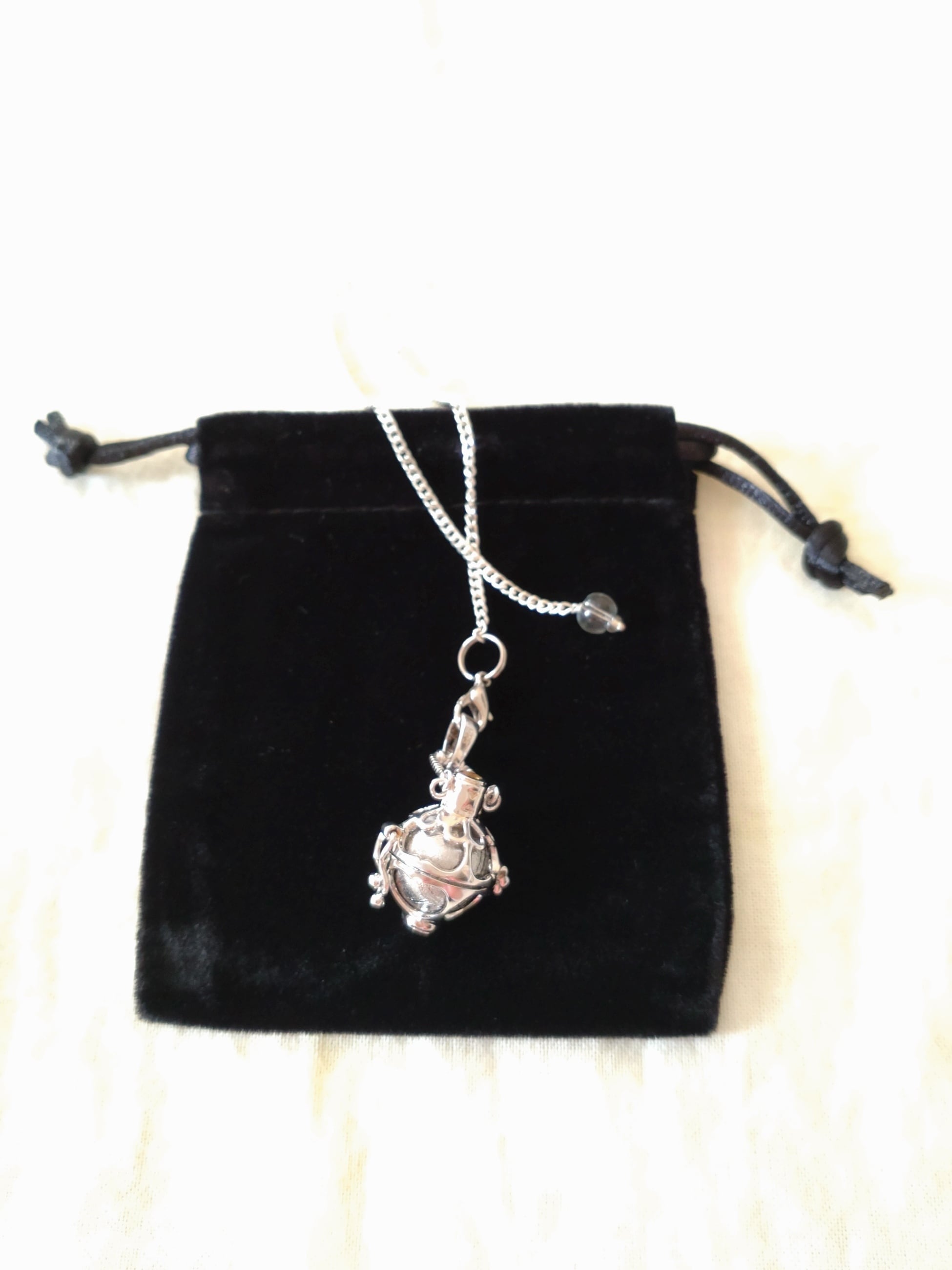 バスケット型ペンダントはSilver925製で、ガムランボールの様なデザインとなります。丸玉の大きさが合えば入れ替え可能でペンデュラムチェーンを外せば、お手持ちのネックレスチェーンや革紐等をご使用頂けるのです。この石とデザインにピンと来た方、お見逃しなく宜しくお願いいたします。