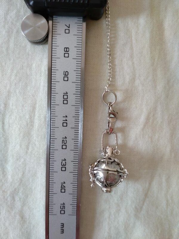ペンデュラムチェーン:真鍮製、約18~18,5㎝(取り外し可能)、先端に水晶付き