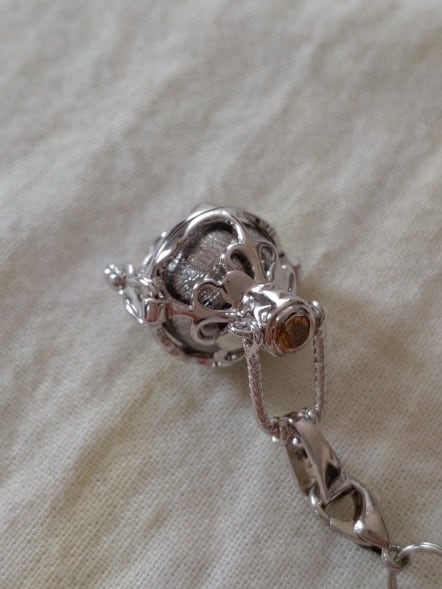 バスケット型ペンダント:Silver925製、ガムランボール形(丸玉は入れ替え可能)・シトリン二石付きデザイン