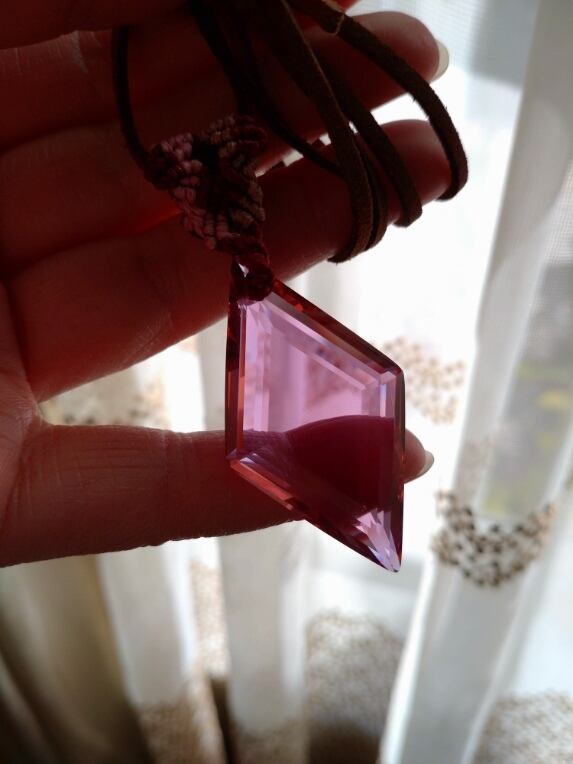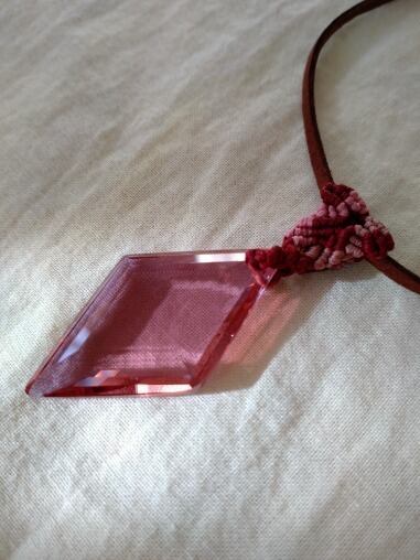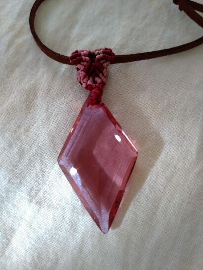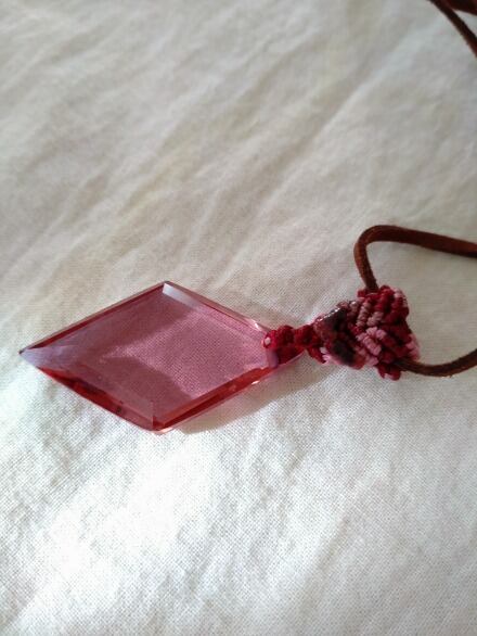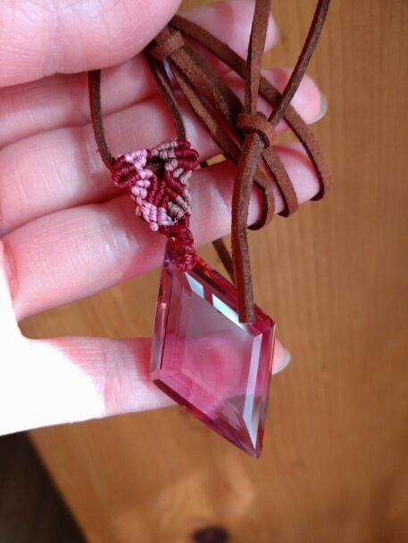 インドネシア産 アンダラクリスタル インディアンレッド(カラーチェンジ)多角面カット マクラメ編みデザインペンダントトップ&スエード調紐 重さ約12g ポーチ付属
