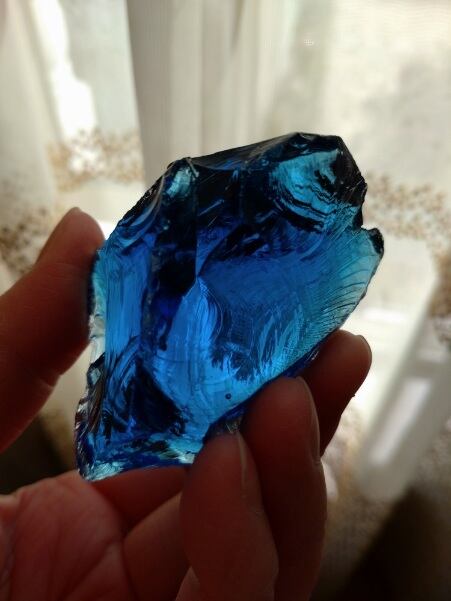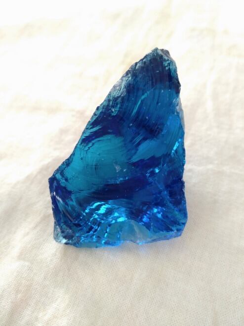 インドネシア産アンダラクリスタルのカラーバリエーションは多様にございますが、こちらは自ら発光して見える鮮やかなブルーとなります。光の質や角度により若干グリーンを落としたブルーの様にも見られる、ワンオクターブ上の波動を感じるアンダラクリスタルの一つとなります。全体にみられる波模様の様な表面とエッジは神秘的で、つまでも見て触れていたいと感じるアンダラクリスタルとなります。癒しの気泡(シーフォーム)が幾つか見られます。