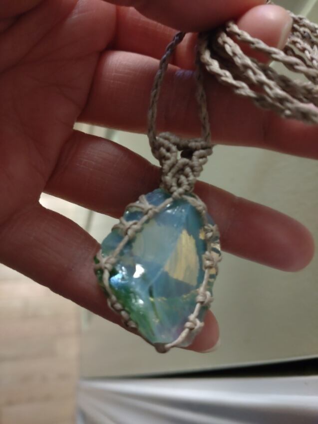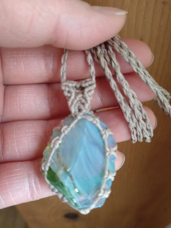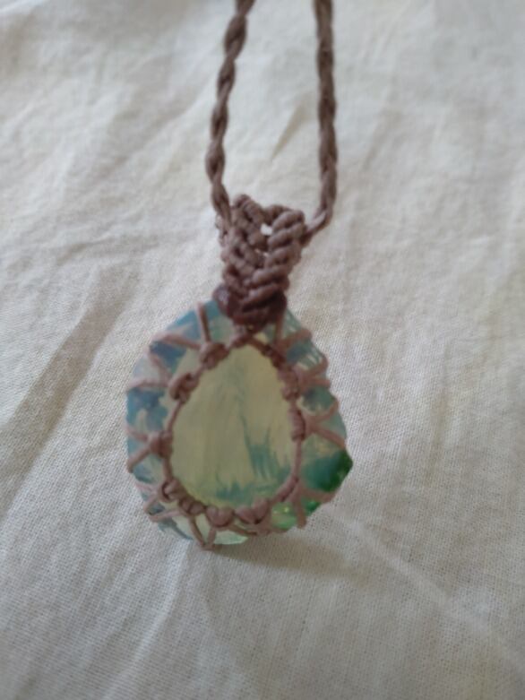 インドネシア産 アンダラクリスタル オパールライトグリーン(ミルキーライトグリーン)マクラメ編みデザインネックレス 紐長さ約80㎝位まで調節可能