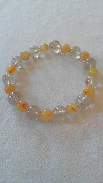 シルバー~ブラウン系ルチルクォーツ&ゴールド~イエロー系ルチルクォーツ デザインブレスレット