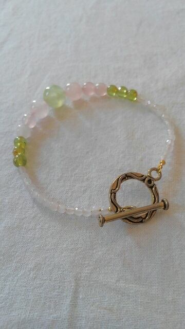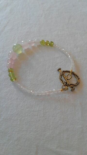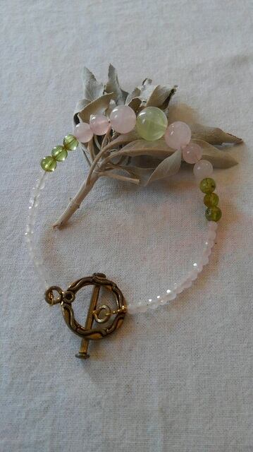 プレナイト・ペリドット・ローズクォーツ(紅水晶)・アンティーク風マンテル デザインブレスレット