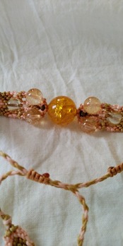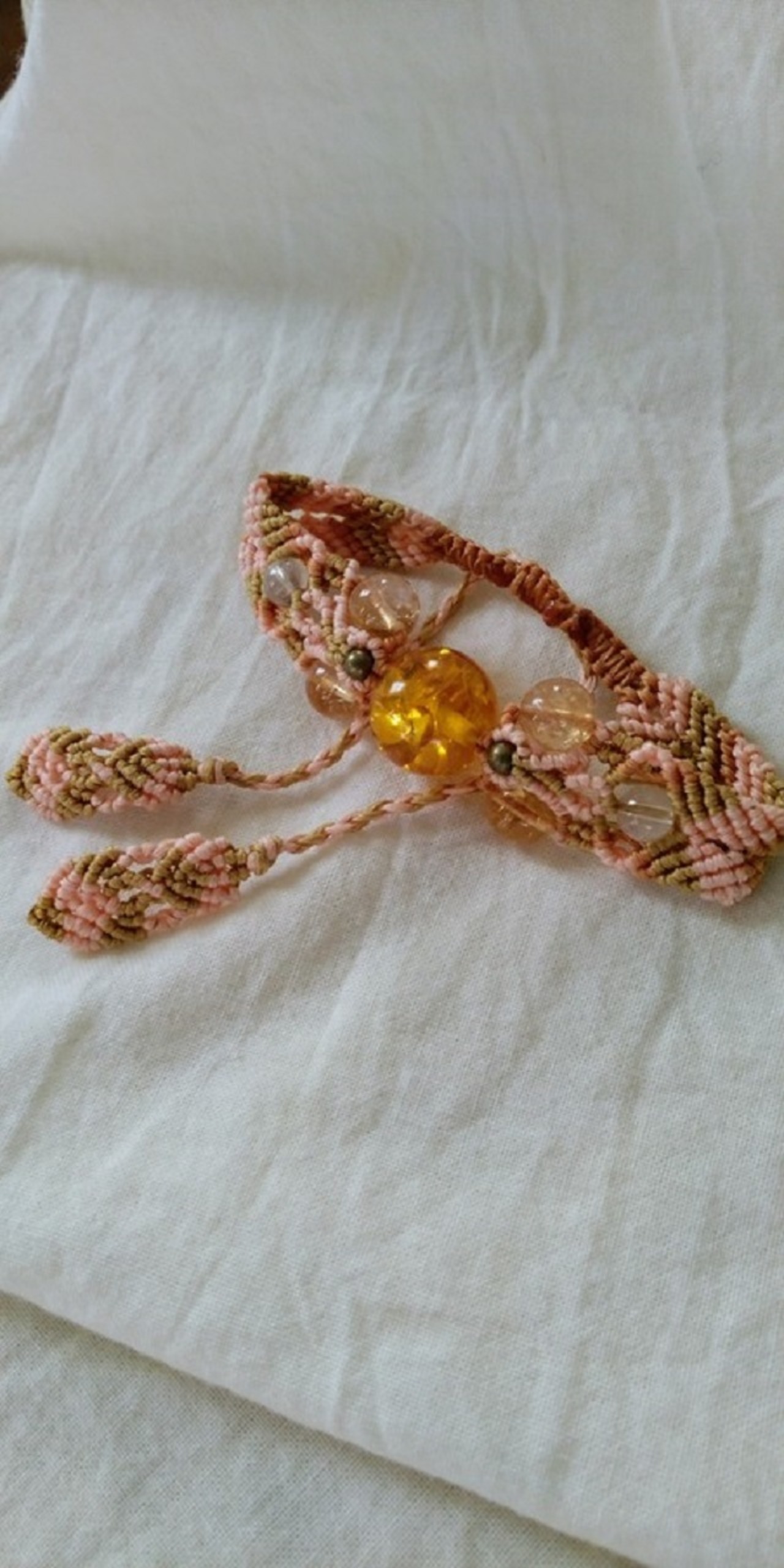 アンバー(琥珀)・シトリン・レモンクォーツ マクラメ編みデザインブレスレット