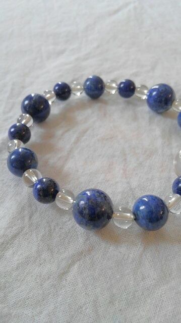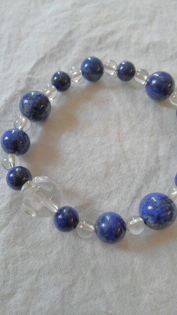 スカル(骸骨)彫り水晶・ラピスラズリ・水晶 デザインブレスレット