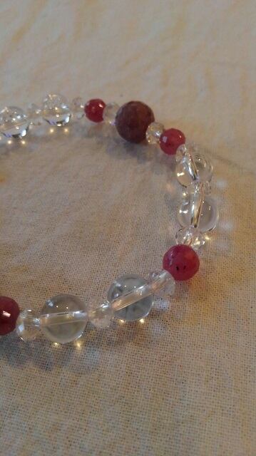 ルビー&水晶 デザインブレスレット 内径約15,5~16cm