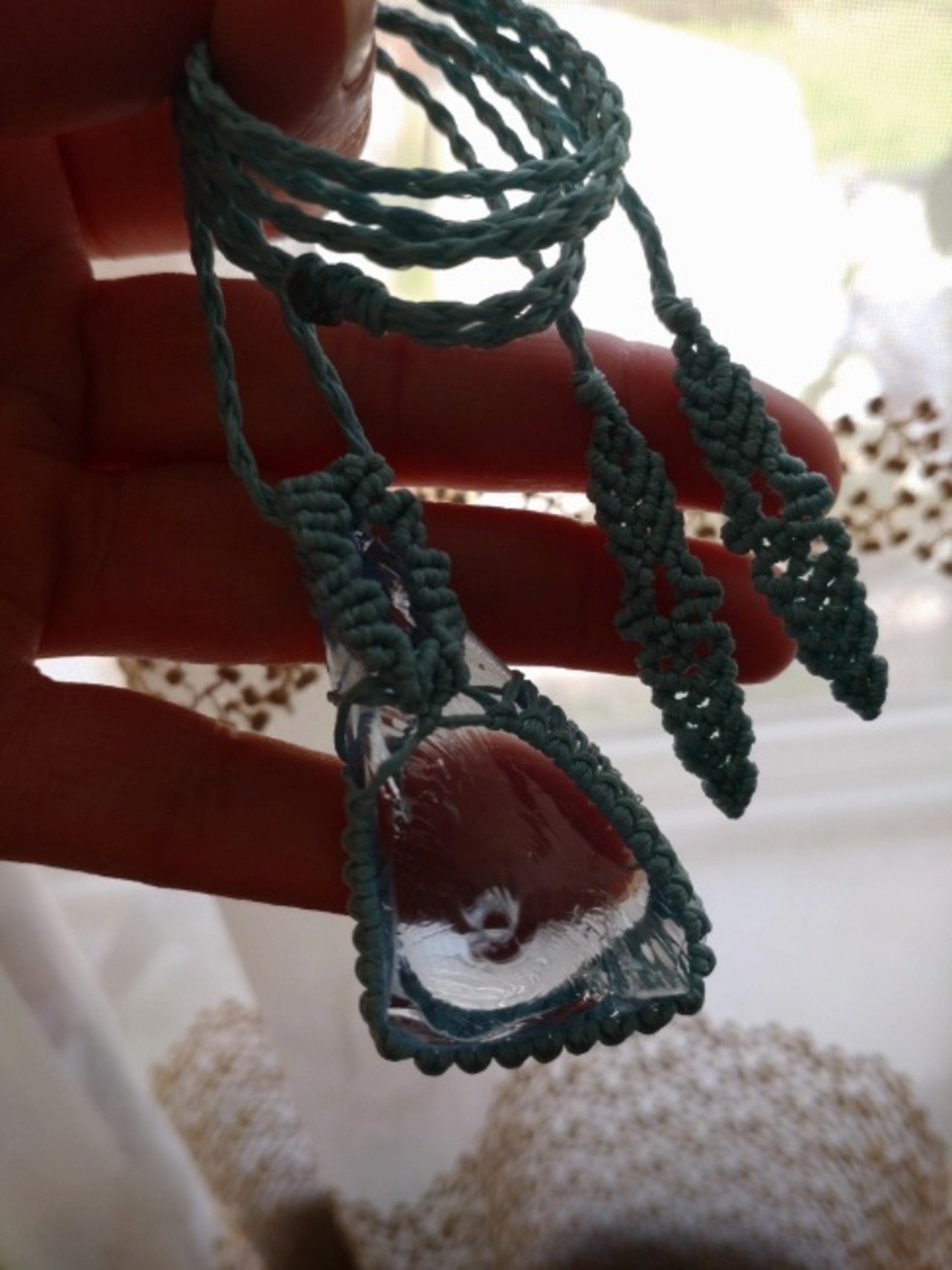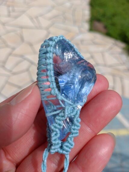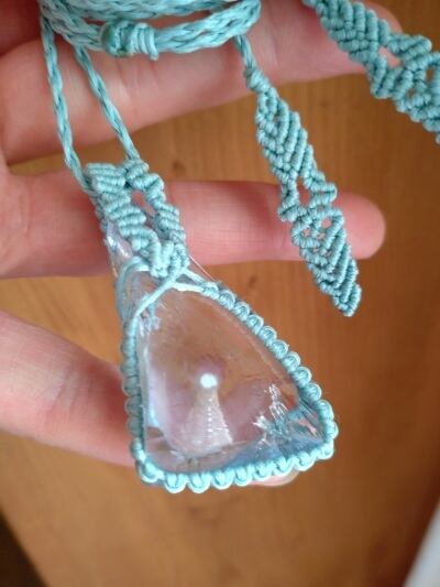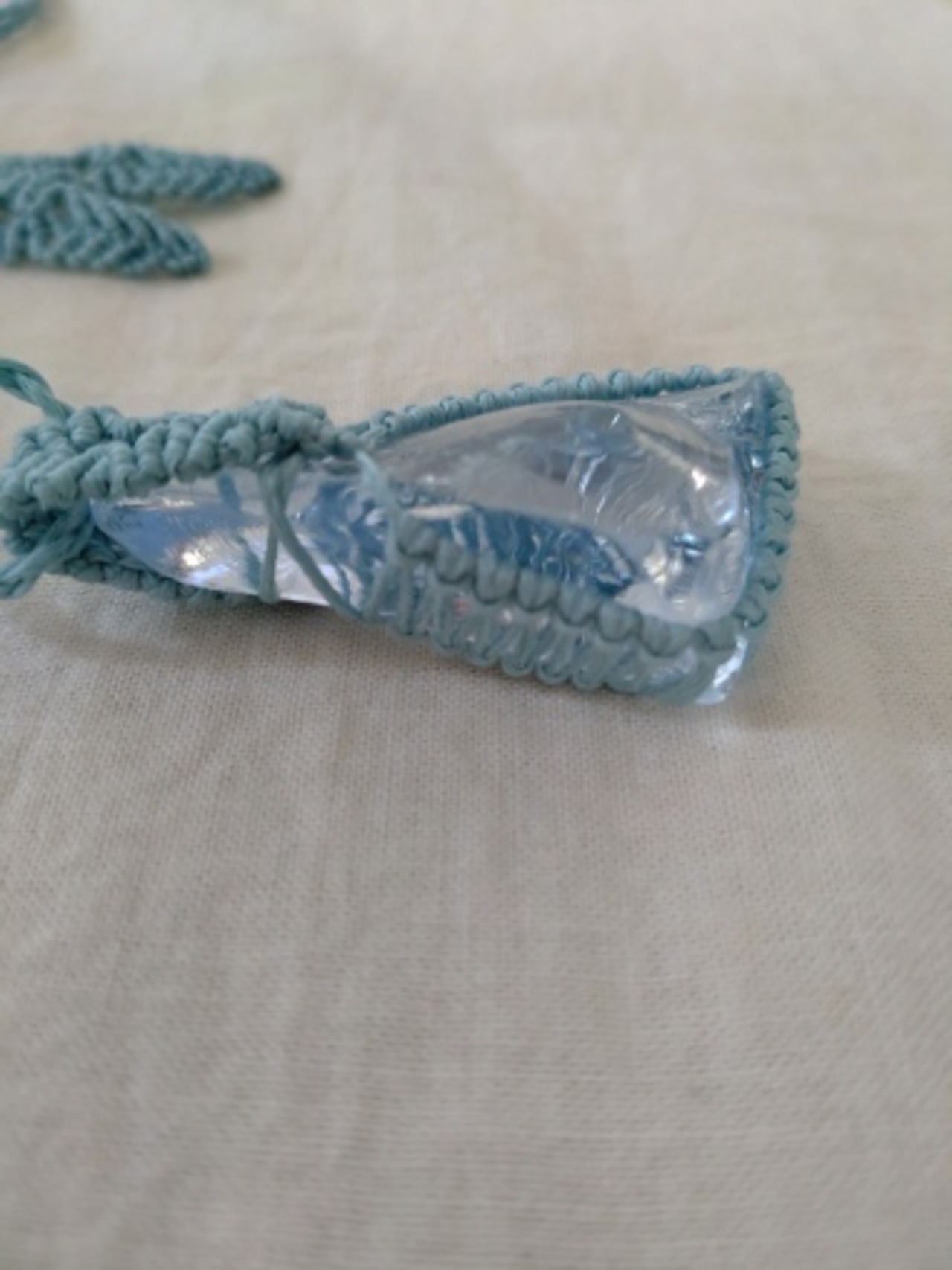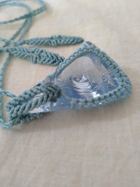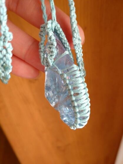 シエラネバダ産 アンダラクリスタル ペールブルー(レディーネリー) マクラメ編みデザインネックレス 長さ約92cm位まで調節可能 ポーチ付属