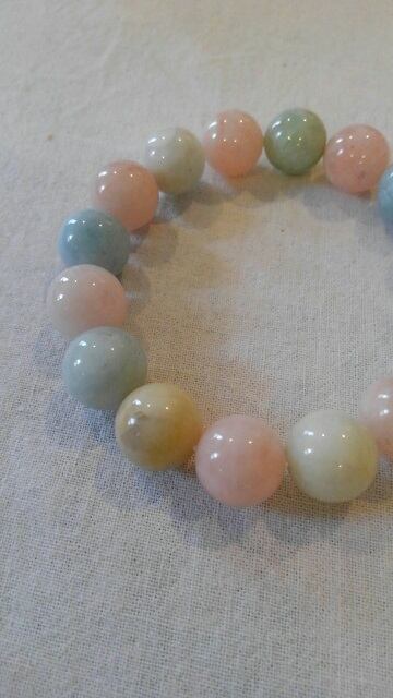 ミルキー・ミックスベリル(アクアマリン・モルガナイト・エメラルド・ヘリオドール)ブレスレット 約11,9~12,5mm珠 内径約15,5~16cm