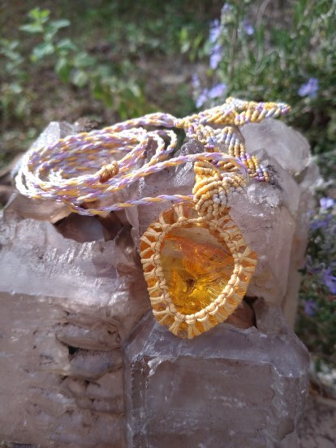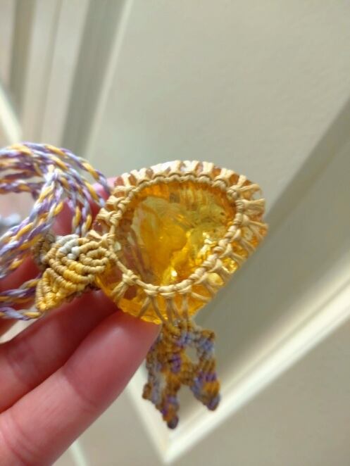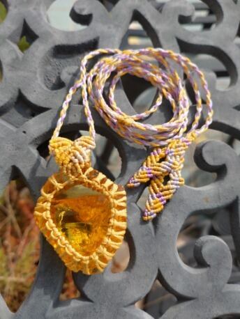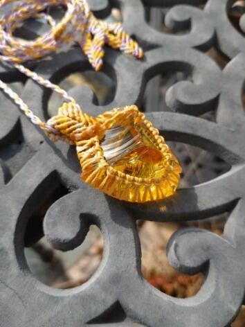 インドネシア産 アンダラクリスタル ゴールデンイエロー(橙色) マクラメ編みデザインネックレス 紐長さ約96㎝位まで調節可能