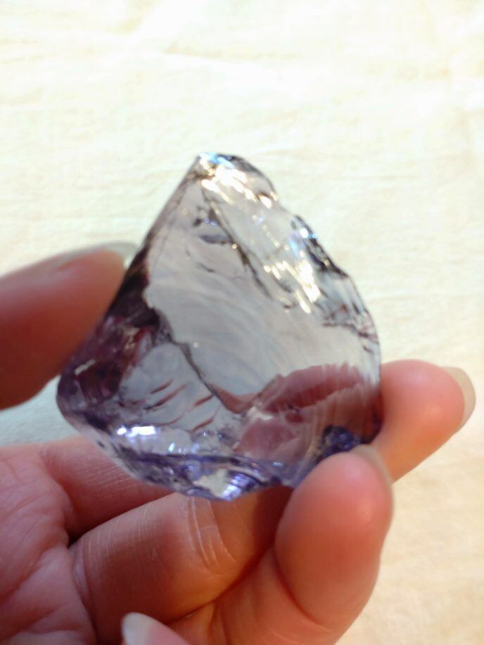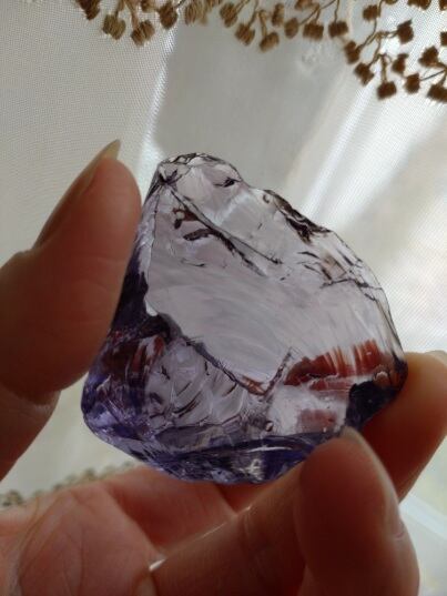 アンダラクリスタルのカラーバリエーションは多く見られますが、こちらはレアカラーのバンデッド ソブリンアメジストとなります。一見すると気が付きにくいのですが、じっと見つめてみると縞模様(バンデッド)が見られ、美しい虹も見られます。天然石アメジストの様な美しい色合いと高貴さを兼ね備え、持つ方を気品溢れるエネルギーで包んでくれるでしょう。第七チャクラに特に対応し、感謝の色であり、そして天界と自身との繋がりを感じられる魅力的なアンダラクリスタルとなります。
