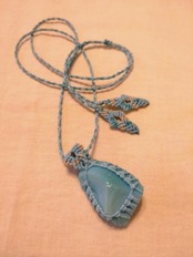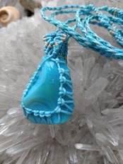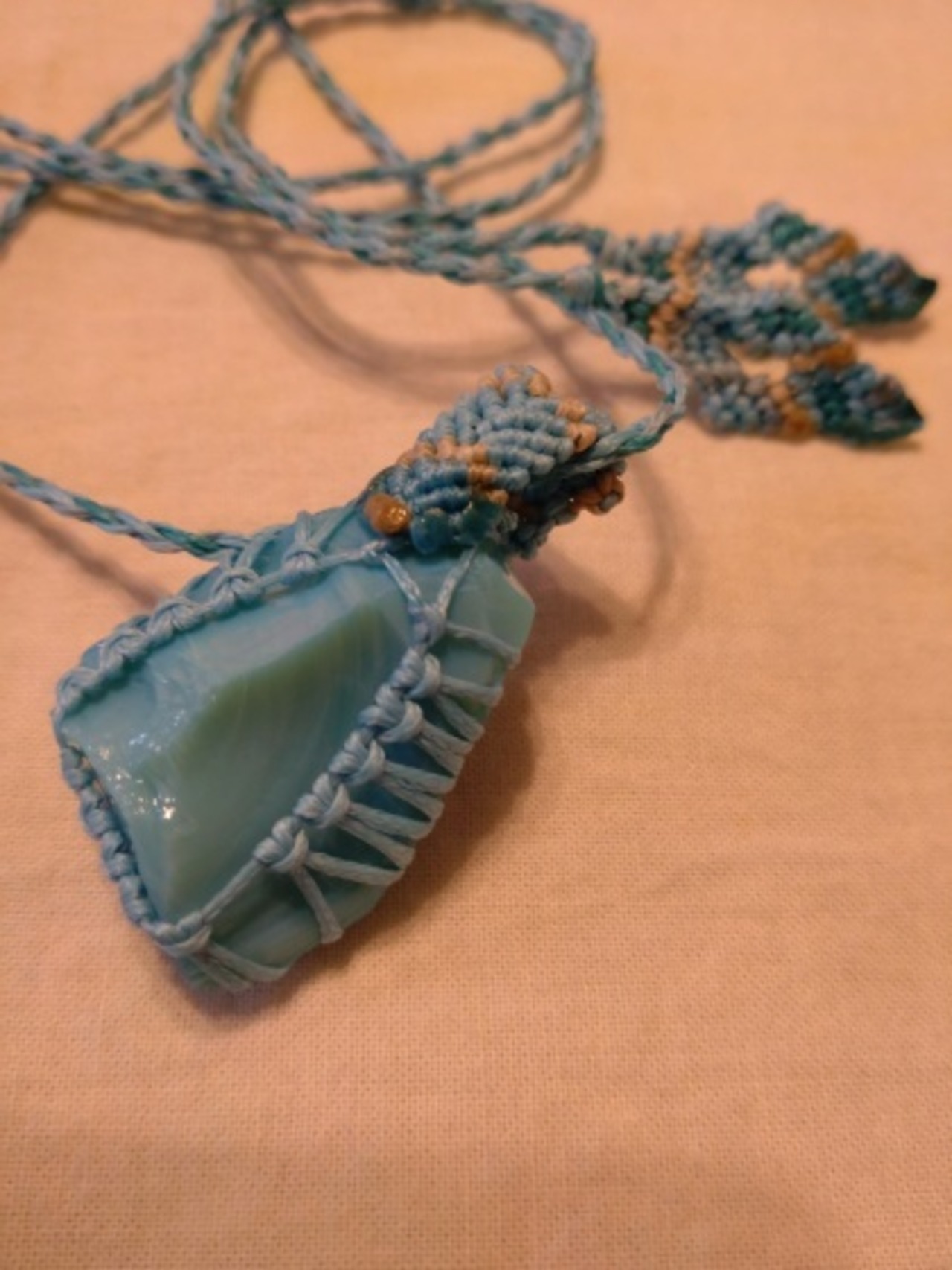 インドネシア産アンダラクリスタル ミルキーライトブルーグリーン マクラメ編みデザインネックレス 紐長さ約86㎝位まで調節可能