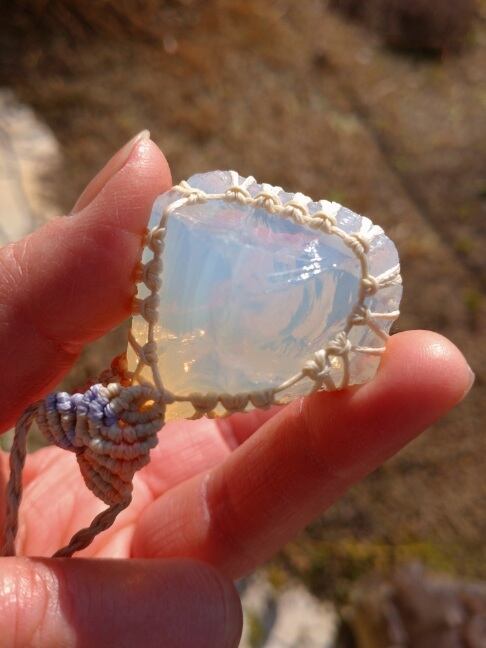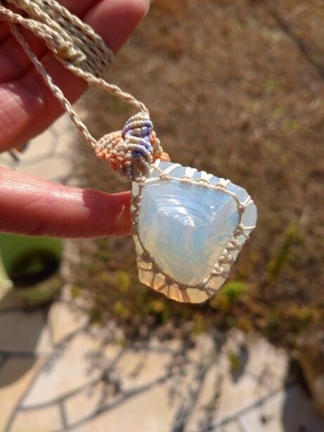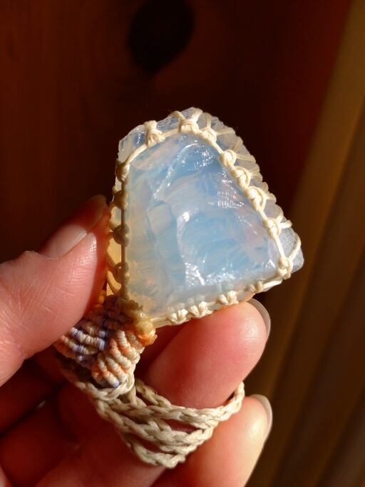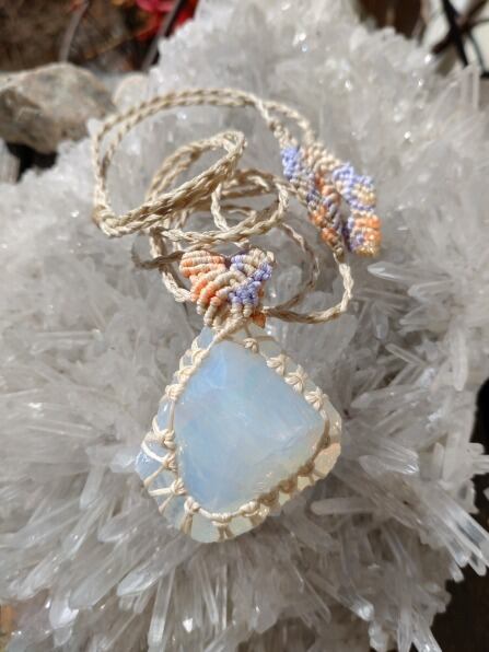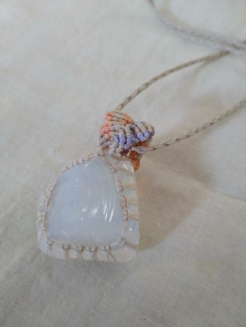 インドネシア産アンダラクリスタル ミルキーホワイト(エンジェルオーラ)マクラメ編みデザインネックレス 紐長さ約94㎝位まで調節可能