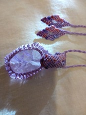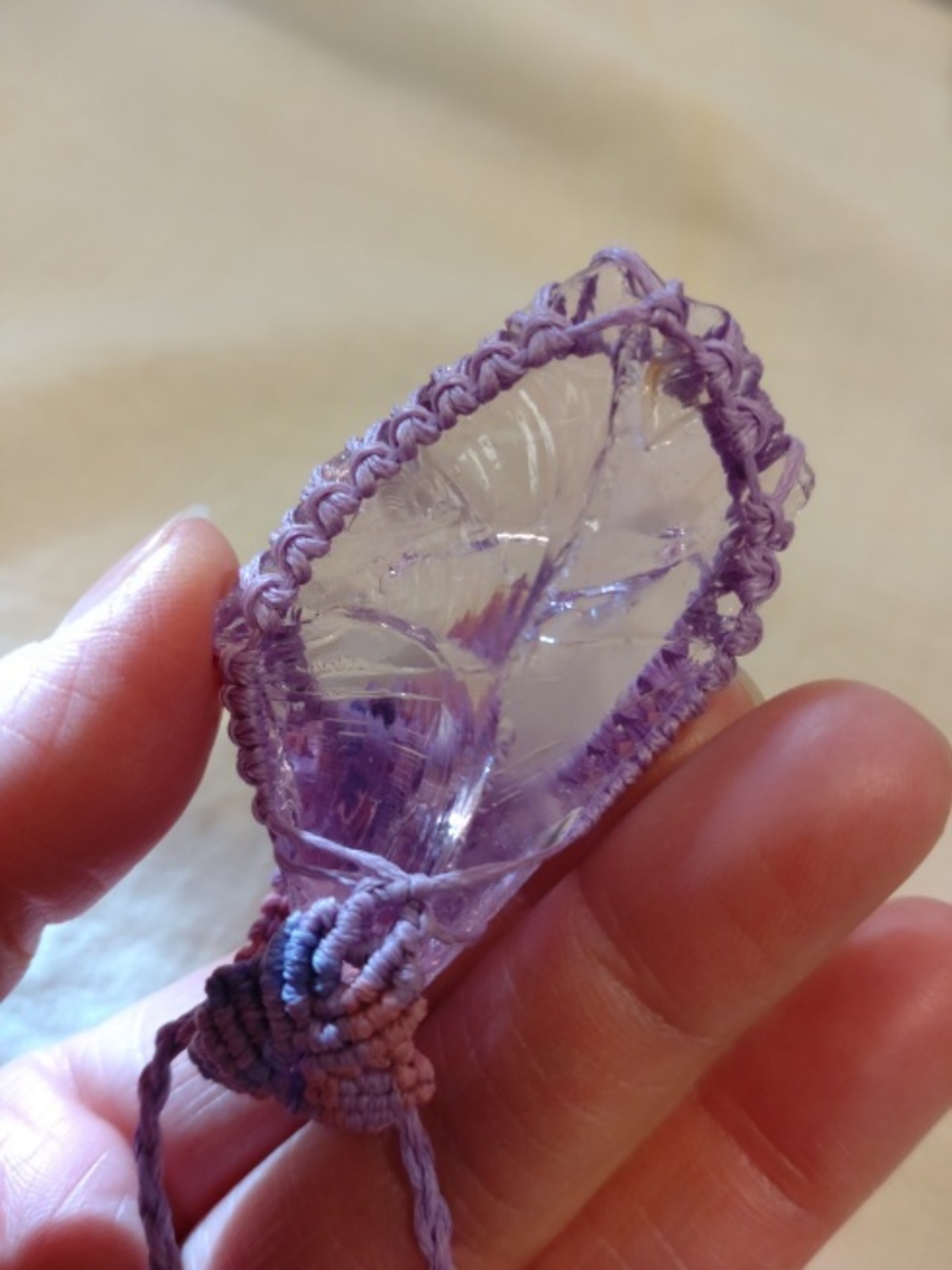 インドネシア産 アンダラクリスタル ライトパープル(光の質によりピンク系に) マクラメ編みデザインネックレス 紐長さ約84㎝位まで調節可能