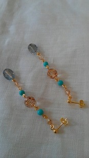 ビーズ:スワロフスキービーズ約10mm×8mm、約8mm、約4mm、ターコイズ(練り)約4mm