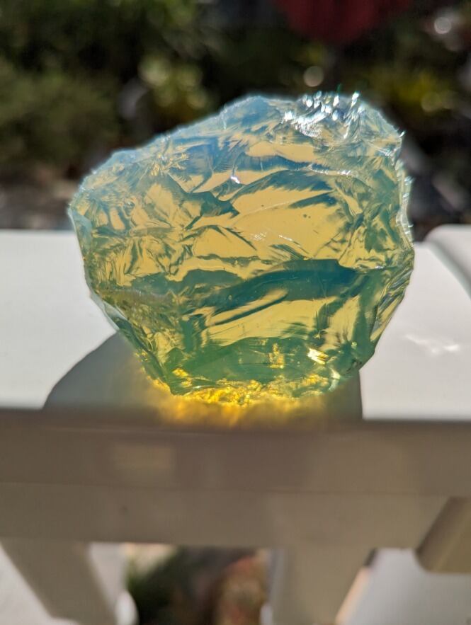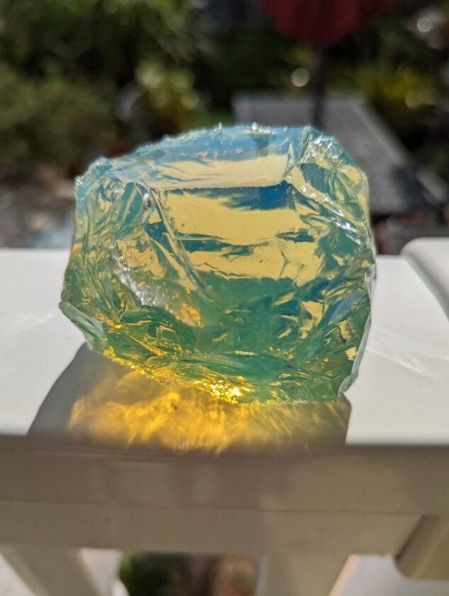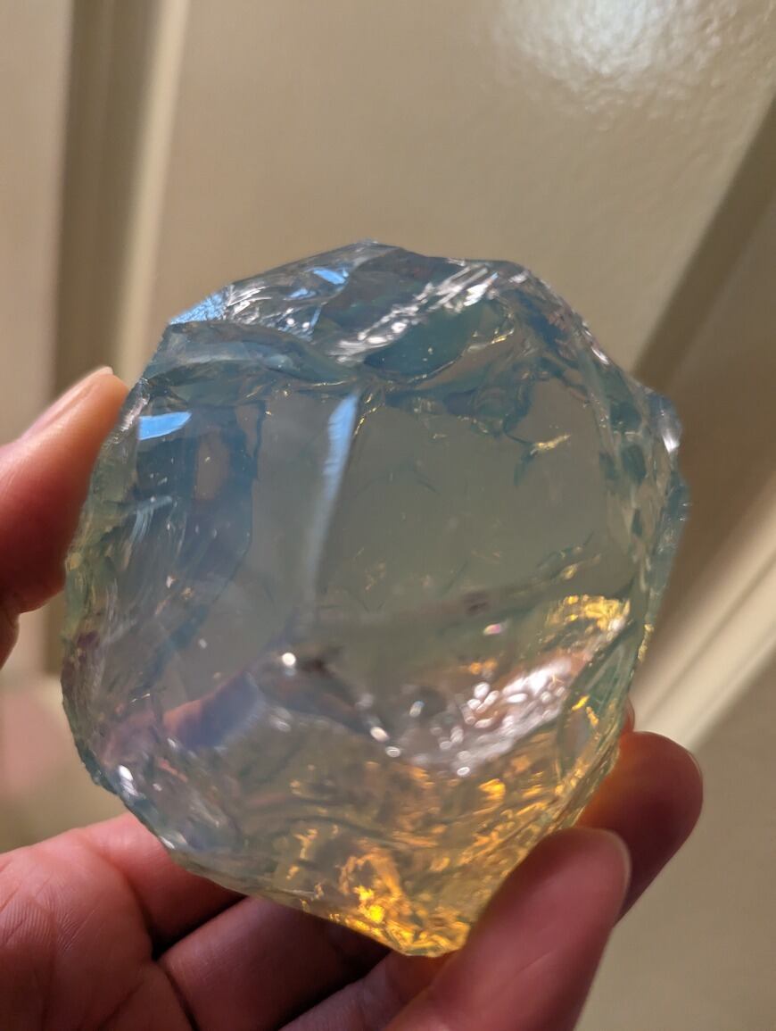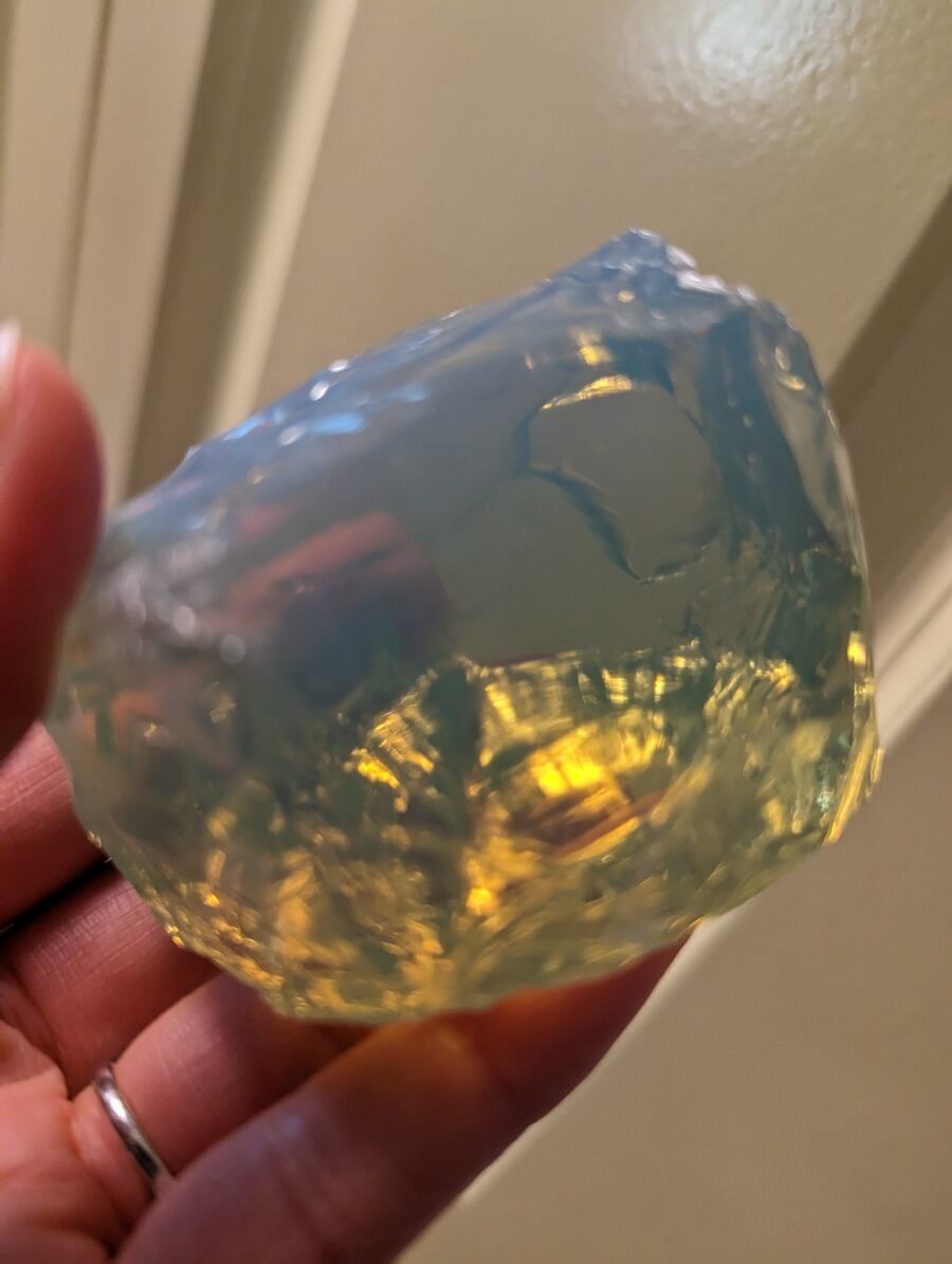 インドネシア産 アンダラクリスタル オパールライトミルキーグリーン(光により輝くはちみつの様なライトグリーン・気泡あり) 重さ約319~320g