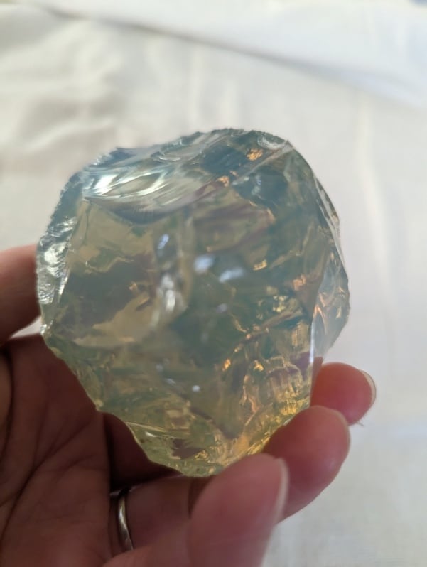 種類:インドネシア産 アンダラクリスタル オパールライトミルキーグリーン(光により輝くはちみつの様なライトグリーン・気泡あり)