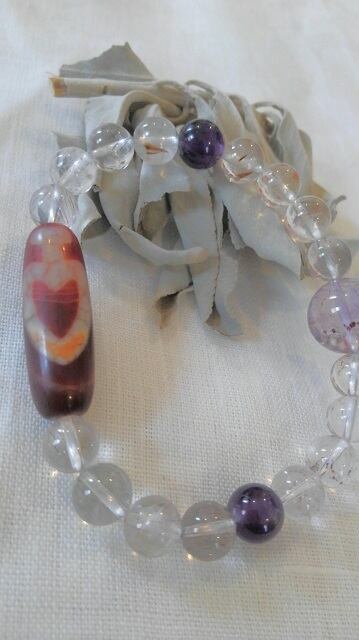 観音寶瓶天珠(チベット産朱砂老礦石)・アメシストエレスチャル・スーパーセブン(セイクリッドセブン)・アメシスト デザインブレスレット