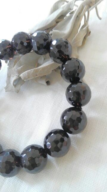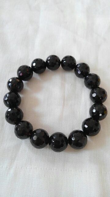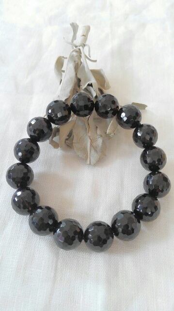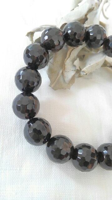 モリオン(黒水晶)128面カット ★ ブレスレット 内径約15,5~16cm