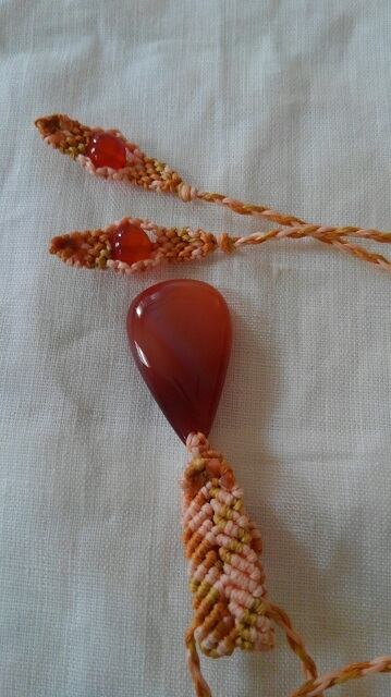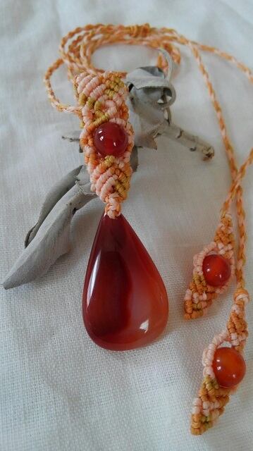 赤瑪瑙(アゲート) ☆ マクラメ編みデザインネックレス 長さ約84cm位まで調節可能