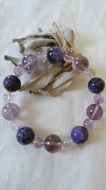 チャロアイト・スモーキーファントムアメシスト・スーパーセブン(セイクリッドセブン)デザインブレスレット 内径約15~15,5cm