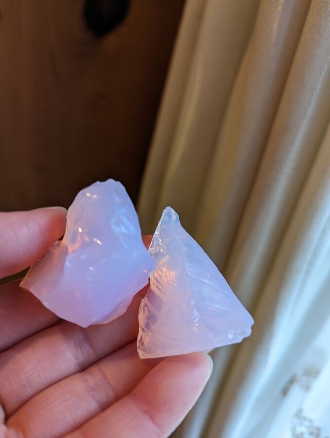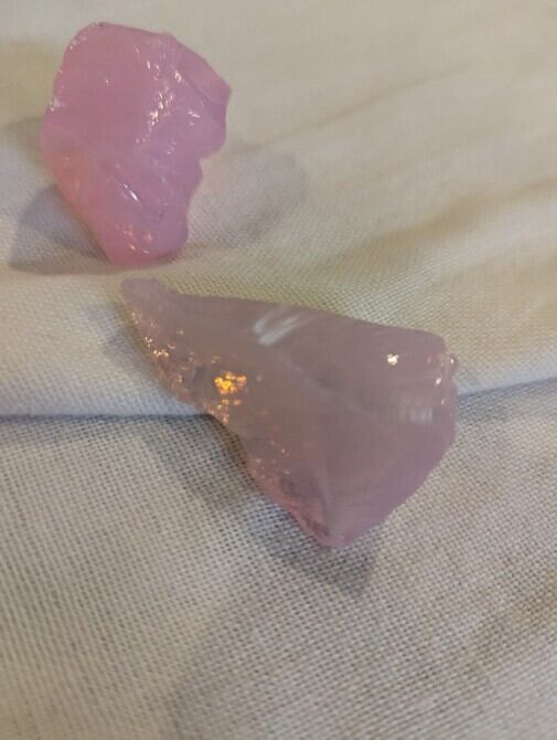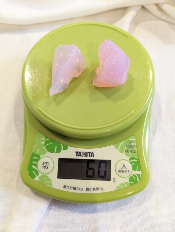 インドネシア産 アンダラクリスタル オパールピンク(ミルキーピンク)二個セット 重さ合計約59~60g ポーチ付属