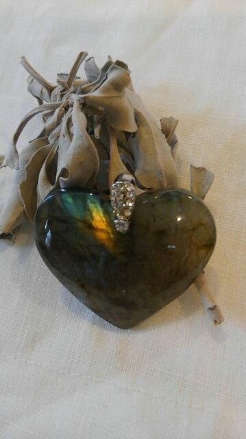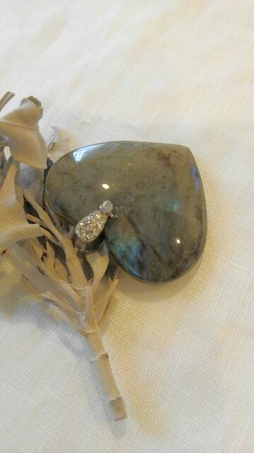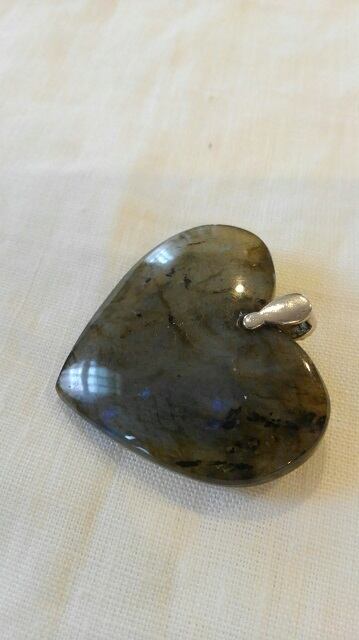 ハートシェイプ ★ マダガスカル産ラブラドライト ペンダントトップ 最大幅約42mm