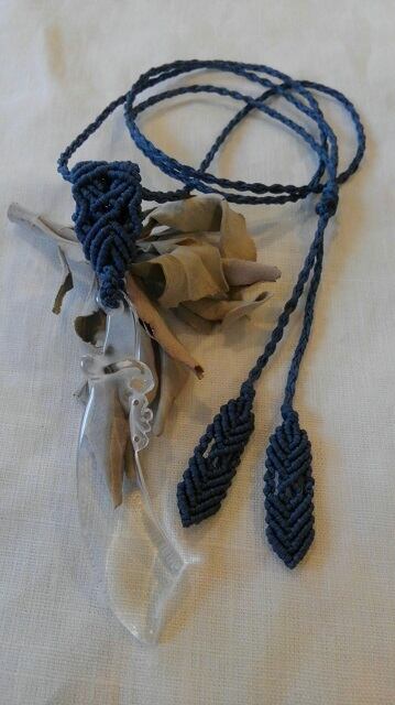 Only One ★ 剣彫り・ヒマラヤ水晶 マクラメ編みデザインネックレス 長さ約78cm位まで調節可能