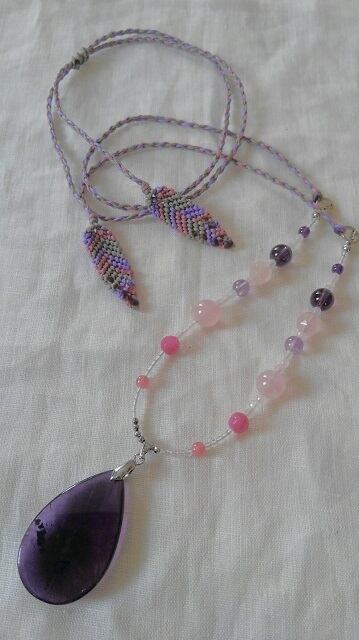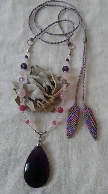 アメシストペンダントトップ&マクラメ編みデザインネックレス 長さ約104cm位まで調節可能