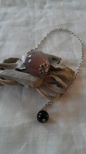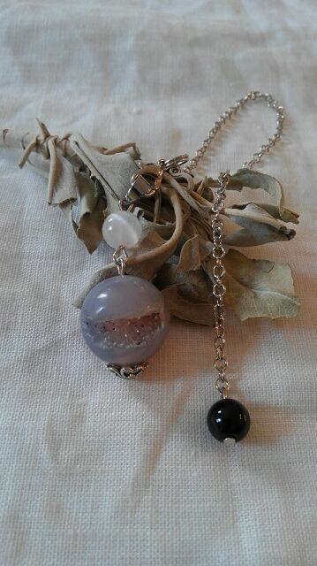 ドゥルージーアゲート(笑口アゲート)・セレナイト・モリオン(黒水晶)☆ ハンドメイド・ペンデュラム ペンデュラムチェーン取り外し可能