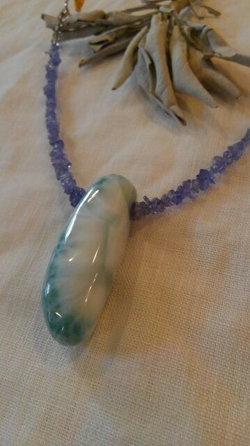 石:ドミニカ共和国産ラリマー約46,29mm×約16,52mm×約15mm、タンザナイトさざれ(不規則な形状)、スモーキークォーツ約3mm